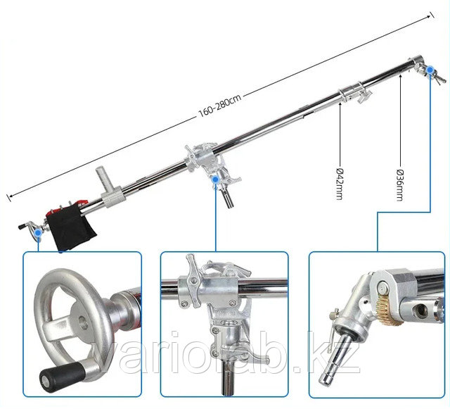 4-секционная кран-стойка для осветительных приборов. Крепление типа маятника. Противовес выполнен в виде мешка для грузов. Отличное решение для выноса рисующего света, отражателя или любого другого фото-оборудования в компактных пространствах. Максимальная грузоподъемность до 30 кг